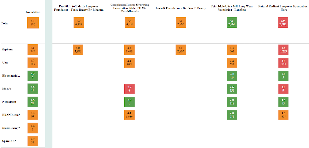 Understand how consumers are rating the products. We extract data from a wide range of product review sites and generate ratings analysis. Proprietary brand and product mapping allows users to analyze ratings trends by category, sub category, segment, corporations, brand and product