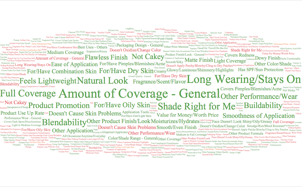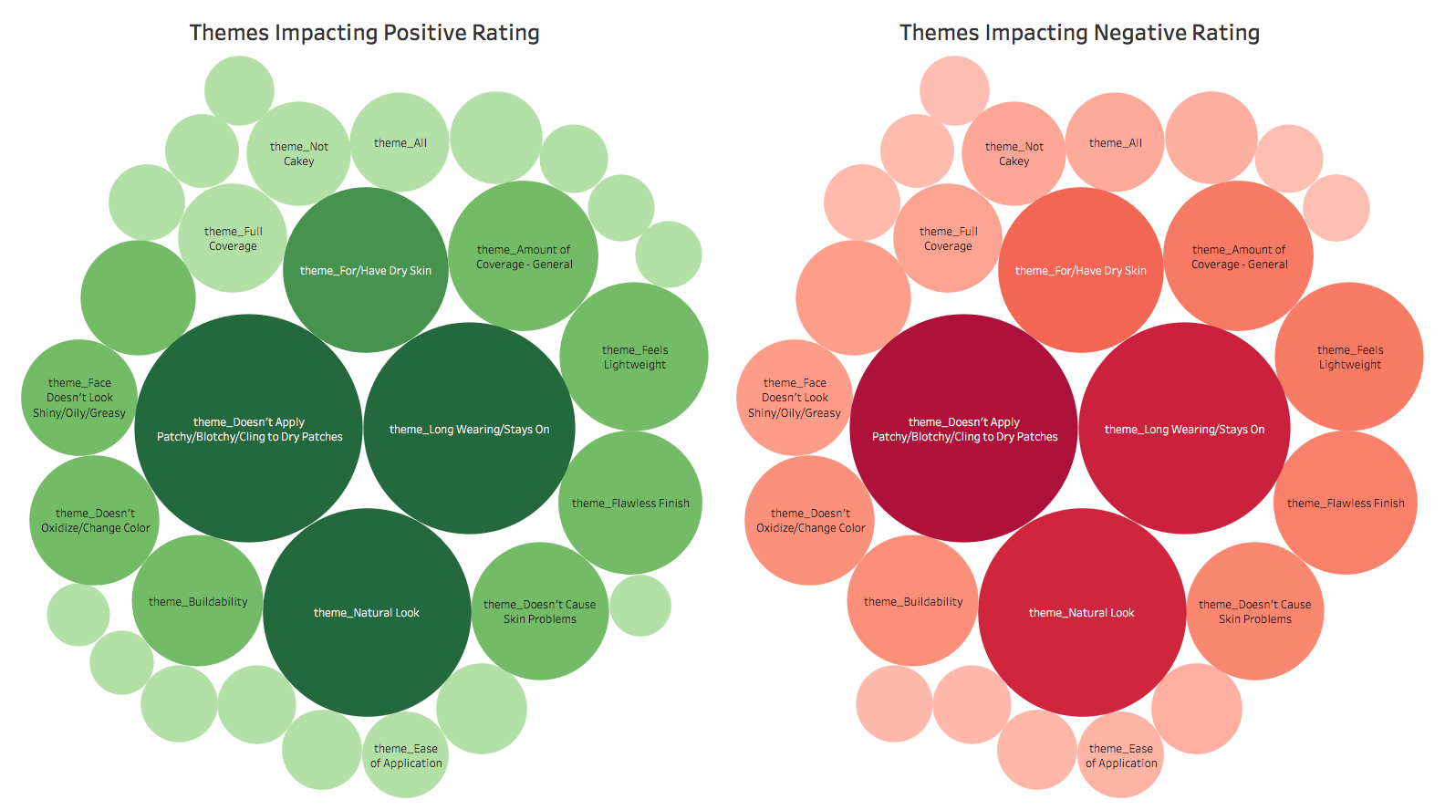 Unlike traditional frequency based world cloud analysis which contain a lot of noise, we identify themes that drive positve, negative and neutral sentiment and ratings.